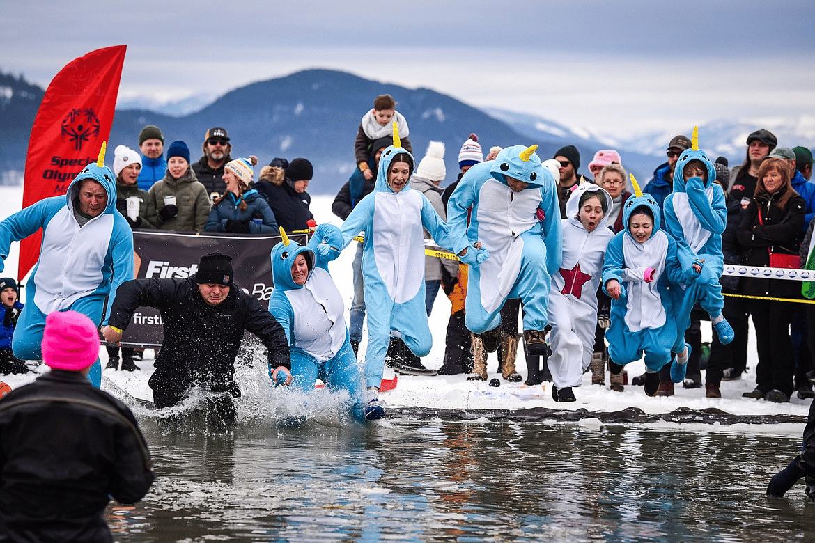 The most famous event is the Penguin Plunge, where brave swimmers — often in various costumes — dive into the freezing waters of Whitefish Lake.